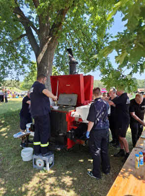 🍝 Und parallel dazu wurde fleißig Nudeln mit Wurstgulasch gekocht – fürs große Kräftemessen beim Kreisausscheid der Jugendfeuerwehren