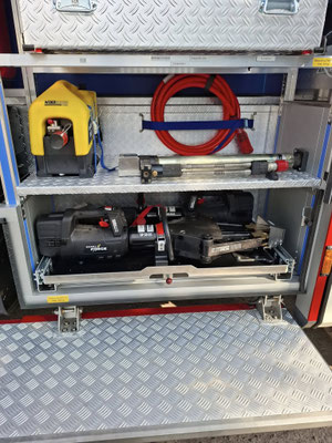 🔹 Schere und Spreizer sind jetzt sicher und ergonomisch im Geräteraum G1 untergebracht