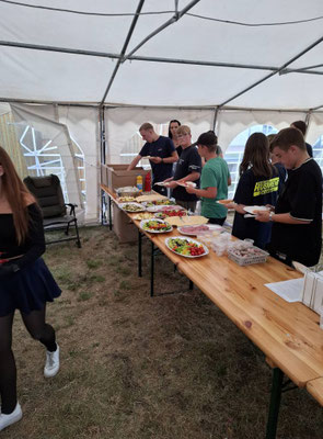 Stimmung wurde gemeinsam gefeiert -- mit leckerem Essen und kühlen Getränken.