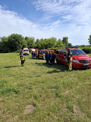Gemeinsam mit den Feuerwehren Grambin, Mönkebude, dem Einsatzleitwagen (ELW) der Feuerwehr Ueckermünde, der Polizei sowie