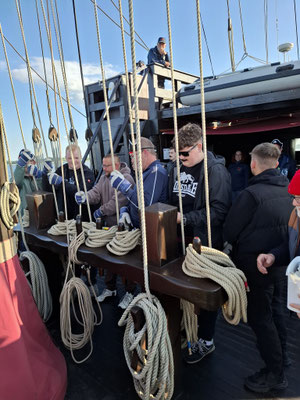 Ein ebenso herzlicher Dank geht an die Besatzung der UCRA- Kogge, die mit viel Herzblut und Fachwissen nicht nur für einen